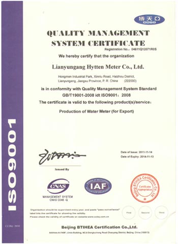 公司2012年3月通过ISO9001认证