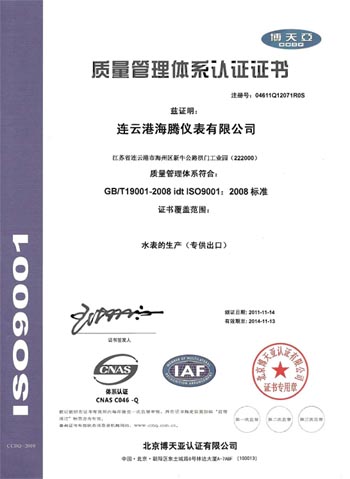 2012年3月通过ISO9001认证。